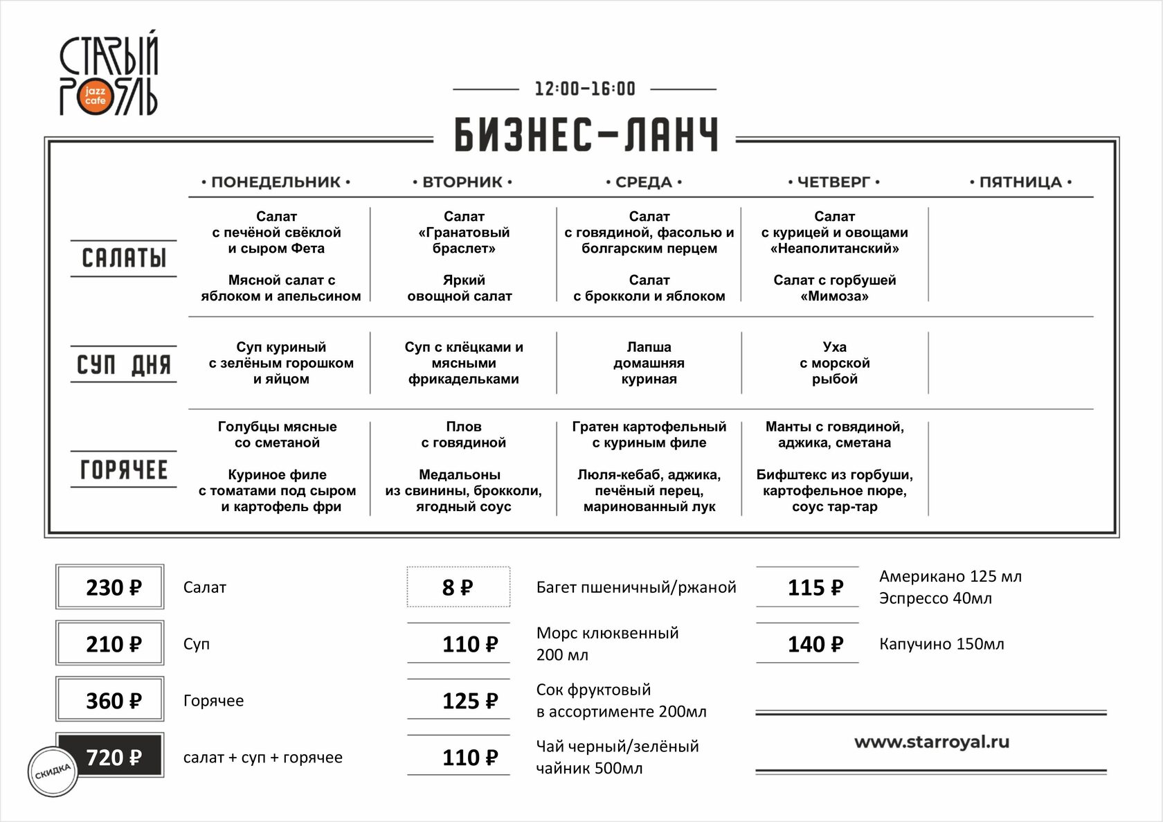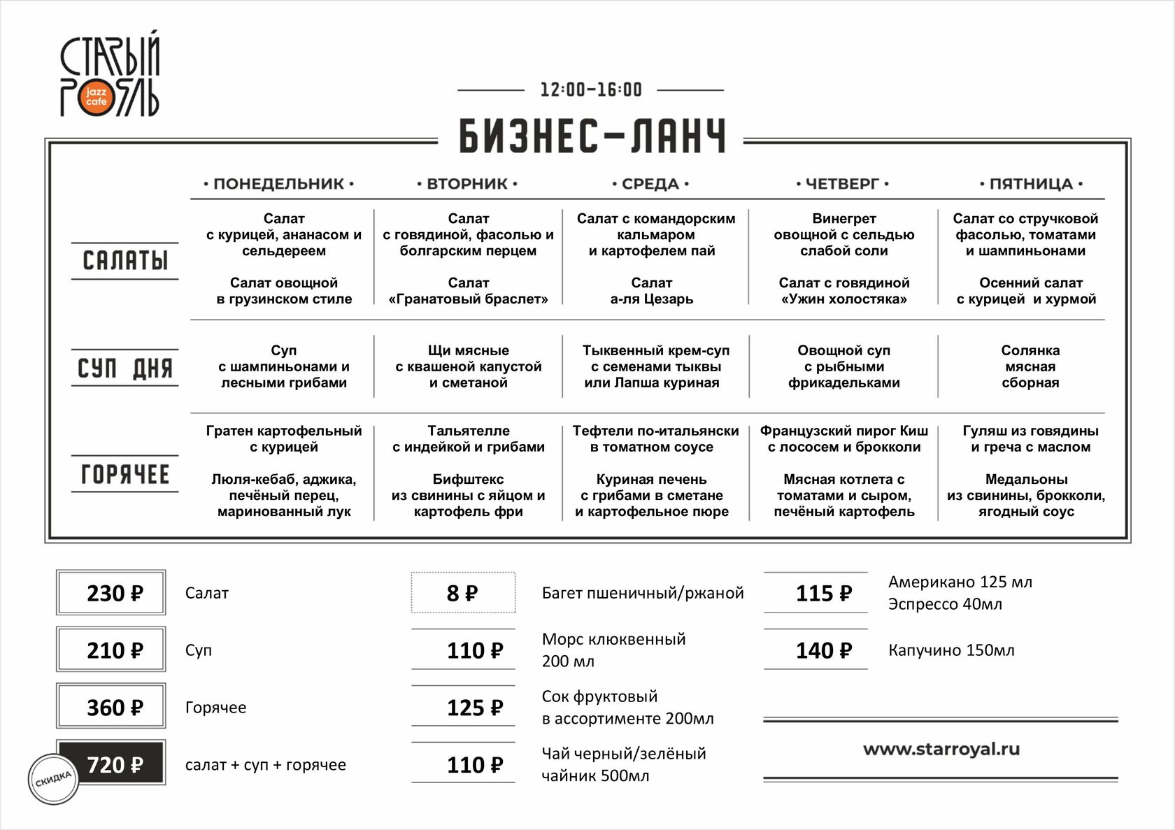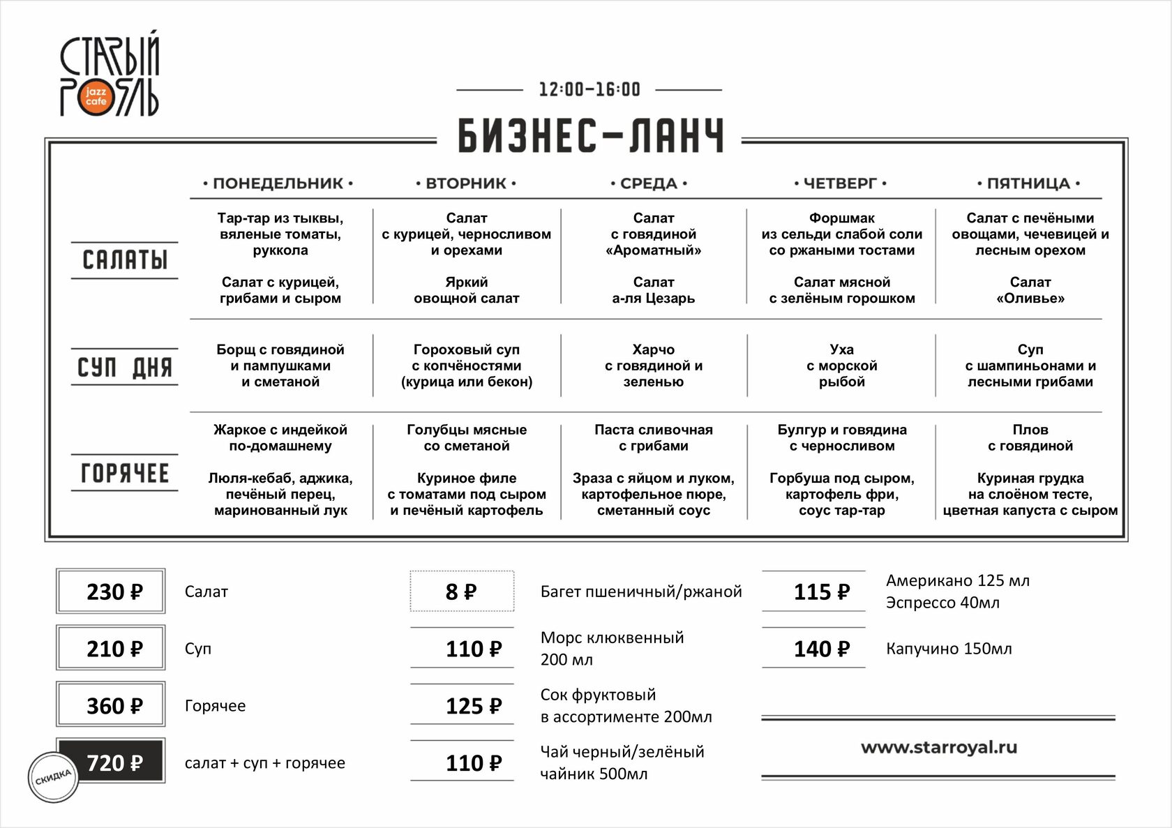 Ланч-меню от 210₽ | Обед из трёх блюд за 720₽